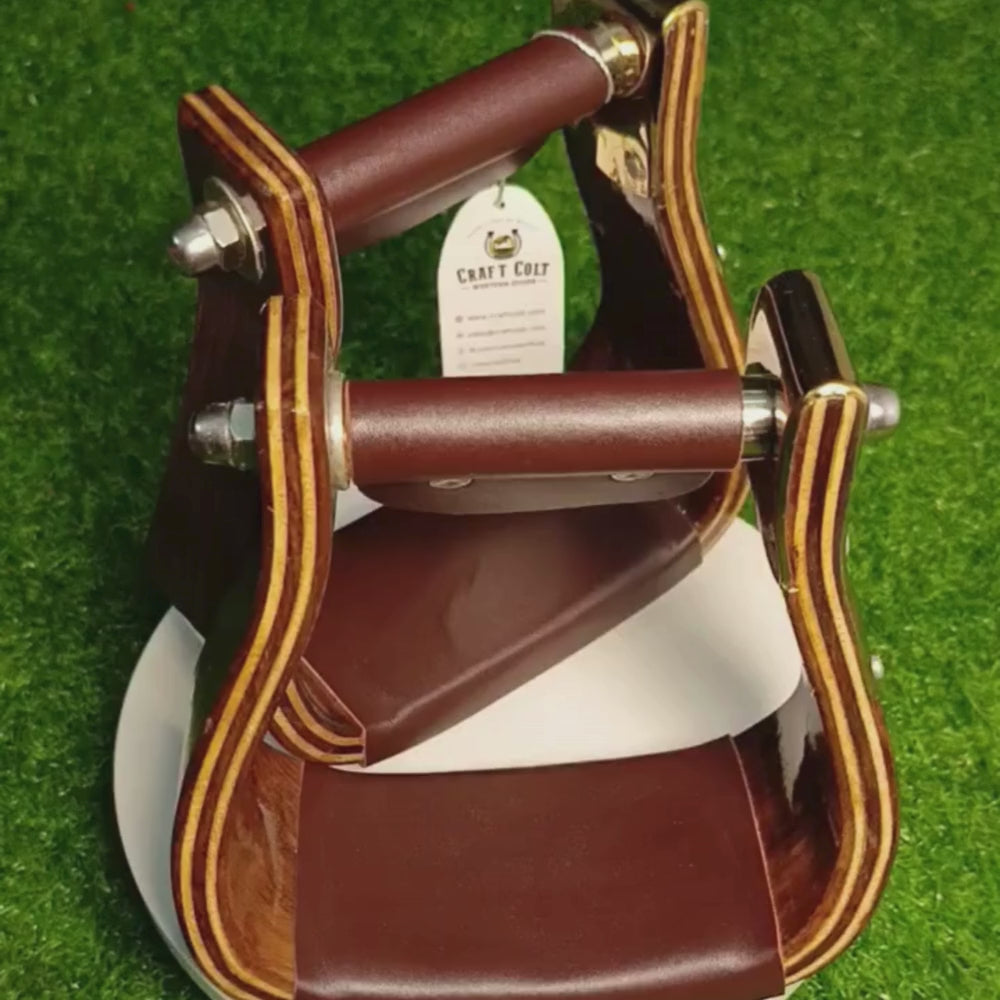 Ride with confidence and rugged Western charm. These Craft Colt wide wooden stirrups feature a durable pocket steel covering for protection, style, and stability — ideal for everyday riding, working ranches, or Western tack collectors.